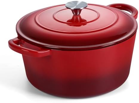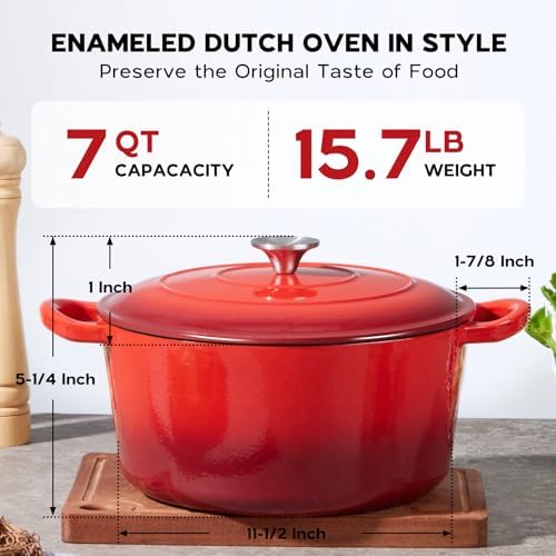 7QT Enameled Cast Iron Dutch Oven with Lid for Bread Baking Round Dutch Oven Pot Heavy Duty – Red