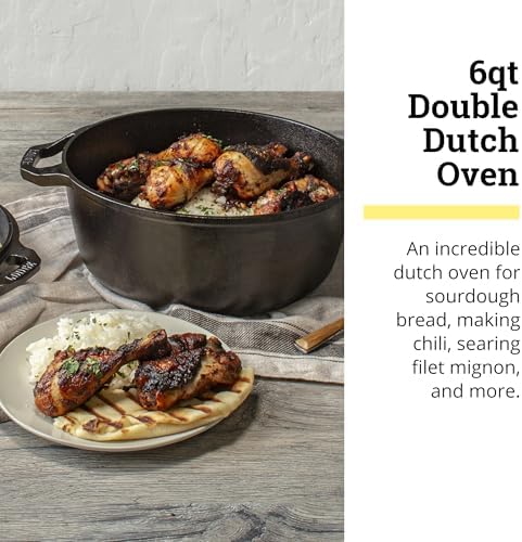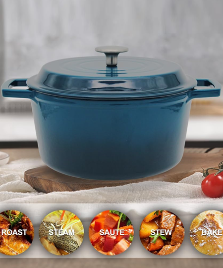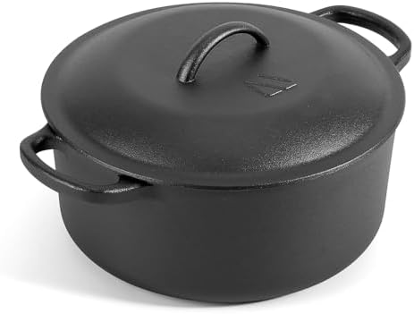 6 QT Basics Cast Iron Dutch Oven Pot with Lid and Dual Handles, Oven Safe up to 500??F Large Cooking Pan,Bread Oven