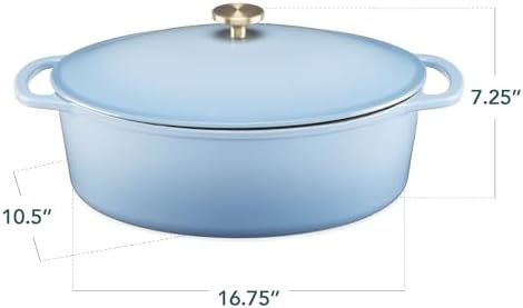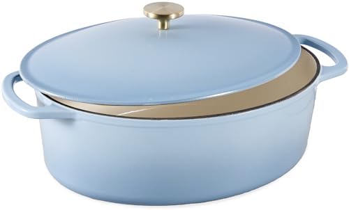 Best Choice Products Oval 7.5 Quart Enamel Cast-Iron Dutch Oven, Heavy-Duty Pre-Seasoned for Baking, Cooking w/Side Handles ?C Cornflower Blue