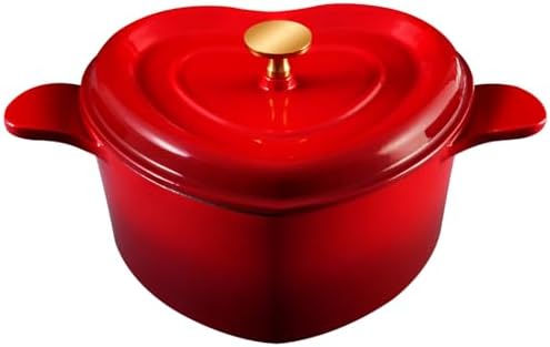 Heart Shaped Cast Iron Dutch Oven – 3 qt Enameled Cast Iron Pot with Lid for Bread Baking, Red