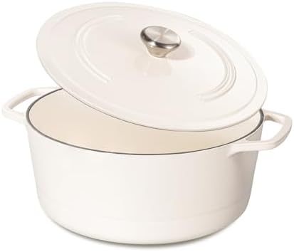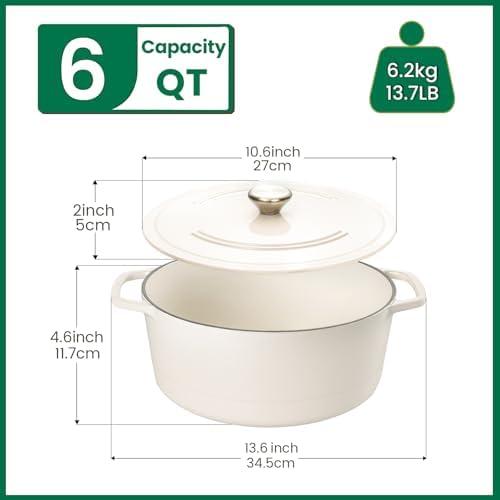 Dutch Oven Pot with Lid 6QT, Enameled Cast Iron Dutch Oven for Bread Baking, Braising, Stews, Roasting, Oven Safe Dutch Ovens, Cream White