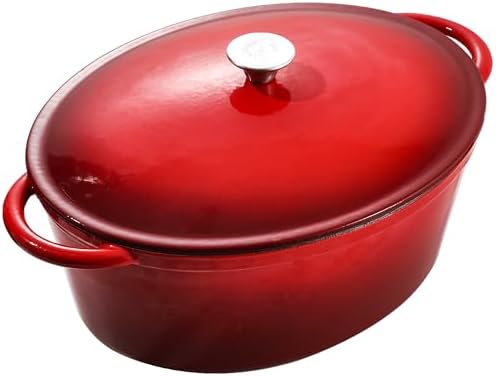 7QT Oval Dutch Oven Pot with Lid, Enameled Cast Iron Dutch Oven with Dual Handles for Sourdough Bread Baking Cooking, Nonstick Enamel Coated Cookware(Red), Non-Toxic & Easy Clean