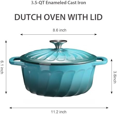 Enameled Dutch Oven with Lid, 3.5 Quart Cast Iron Dutch Oven Pot,Dual Handles for Bread Baking, Cook, Bake, Refrigerate Safe across All Cooktops(Green)