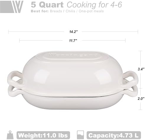 Enameled Cast Iron Sourdough Bread Oven, Dutch Oven, Loaf Cast Iron Bread Pan for Homemade Bread Baking Pan with Lid, 5QT, White