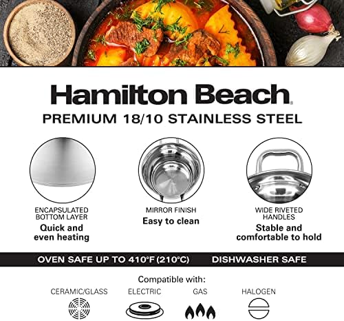 Pro Tri-Ply Stainless Steel Dutch Oven with Lid 6 Quart, Induction Compatible, Oven Safe 500F, Lid 350F, Cookware, Fast & Even Heat, Professional Quality & Durability, Dishwasher Safe, Silver